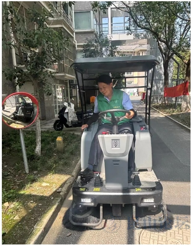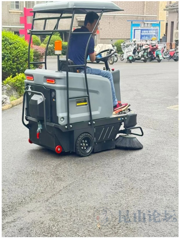 随着机械化设备逐渐进入物业服务管理行业,通过“机械设备+人工”相结合的模式逐步推广起来。小区道路存在垃圾、灰尘等污染频次高、保洁量大的特点,以往人工清洁的方式不仅费时费力,效果还不一定好。 为了给业主们创造一个更加温馨、舒适的生活环境,同时贯彻“高效率,保品质”的经营方针,在昆山市物业服务管理协会的指导下,江苏烨德物业引入了驾驶式扫地机进行小区道路的清扫。 驾驶式扫地机是将扫地、吸尘相结合的一体化垃圾清扫设备,具有工作效率高,清洁成本低,清洁效果好,安全性能高等优点, 配有喷淋功能,防止清扫过程起尘,造成二次环境污染。 青江秀韵小区内树木落叶较多,驾驶式扫地机的应用大幅提升了保洁质量和效率,可一次性完成道路清扫、洒水降尘、垃圾收集等作业。 快速、高效地清扫落叶、纸屑、花絮等人工难以清理干净的小型污物,解决了全人工清扫时的扬尘问题,改善了小区的空气质量,为业主营造了干净、怡人的居住环境。随着新“伙伴”的加入