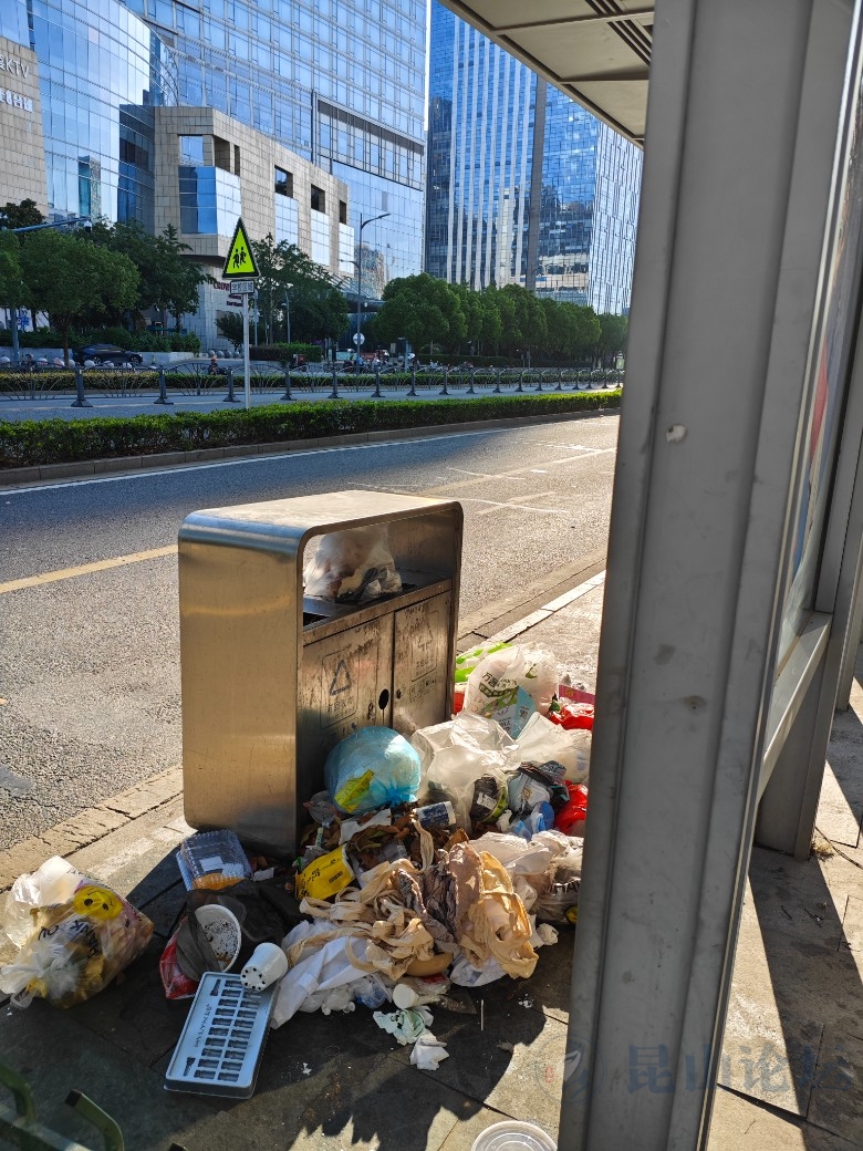 便民君向高新区相关部门了解到:您反映的昆山高新区萧林路、紫竹路公交站台垃圾异味问题已收悉。高新区环卫所高度重视,立即安排工作人员前往现场核查, 经核实,主要原因有两个:1. 7月新市场化作业单位刚开始接手,人员及时间安排不到位、垃圾清理不及时;2. 店铺夜间外摆产生垃圾量大,夜班保洁员下班后没有及时清理,导致大量垃圾堆放路边影响市容环境。整改措施:环卫所已责令市场化作业单位立即调整作业时间,加强人员保洁力度,及时清理路面垃圾,并安排车辆冲洗地面脏污,路边堆放垃圾已立即清理完成。并于7月2日下午对该区域范围内的道路保洁和垃圾收运两家市场化作业单位负责人进行了约谈,环卫所将加强督察及监管力度,对发现的问题纳入月度考核,落实长效管理机制。感谢您的理解与监督!