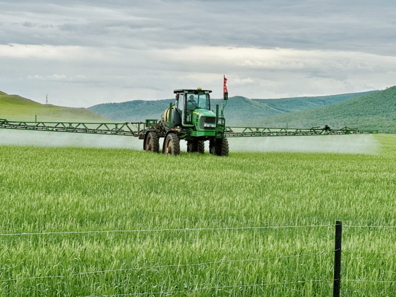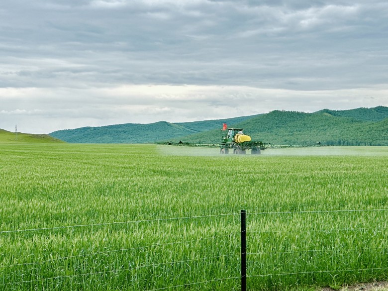 就直奔入住酒店了,路上看到麦田机器洒药的,拍了两张。