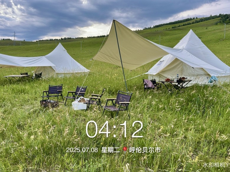 下午在额尔古纳河八卡这里露营下午茶,傍晚时分开始烧烤,吃着羊肉串,牛肉串看日落。