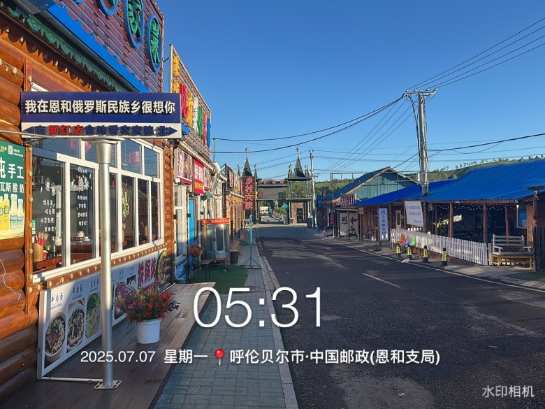 少女心松鼠:没有早市逛,今天没有准备去看日出,住的位置走去空旷地看日出有点距离。就去小镇瞎逛了一小圈。清晨的恩和真清冷。[表情]估计体感温度6度多点吧![表情]这个点很少游客出来,每次喜欢一早出来逛,就是人少图个清净。[表情]....... (2025-07-07 07:23)