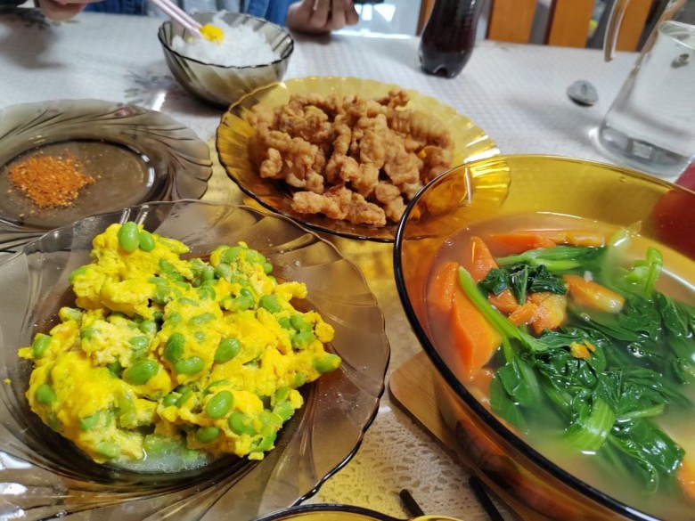 这次糖醋排骨用的是冰糖,吃起来甜的更清爽一点,用白糖就有点腻;清炒四季豆用小火多干煸几分钟,加了辣椒和蒜末还有调味辣椒,味道更好;毛豆子炒鸡蛋有点煎过头了,味道是还行,毛豆子一定要煮烂再加鸡蛋。