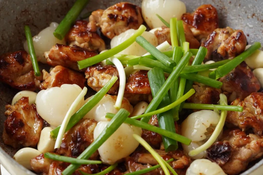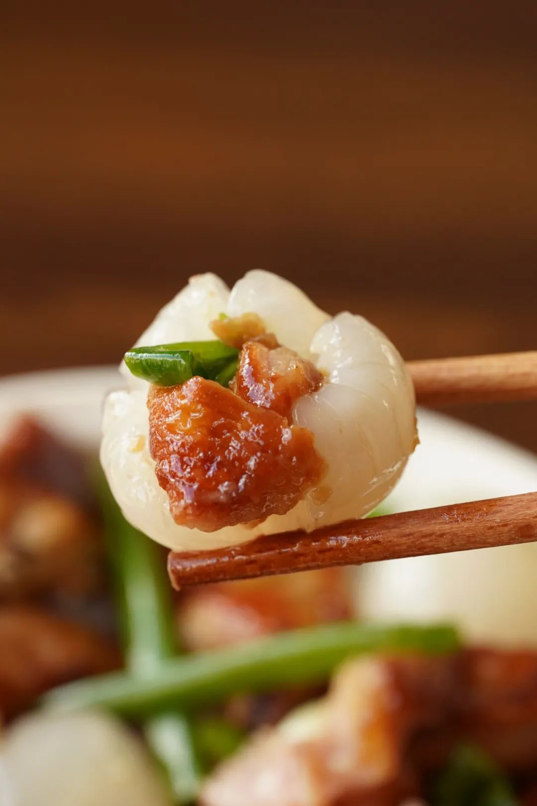 荔枝在热锅中变得更加柔软,却不失原本的甜,反倒多了些果香蒸发后的浓郁。鸡肉因为荔枝的汁水变得更加柔嫩,吃起来不会腻,甚至还有些清爽的回甘。