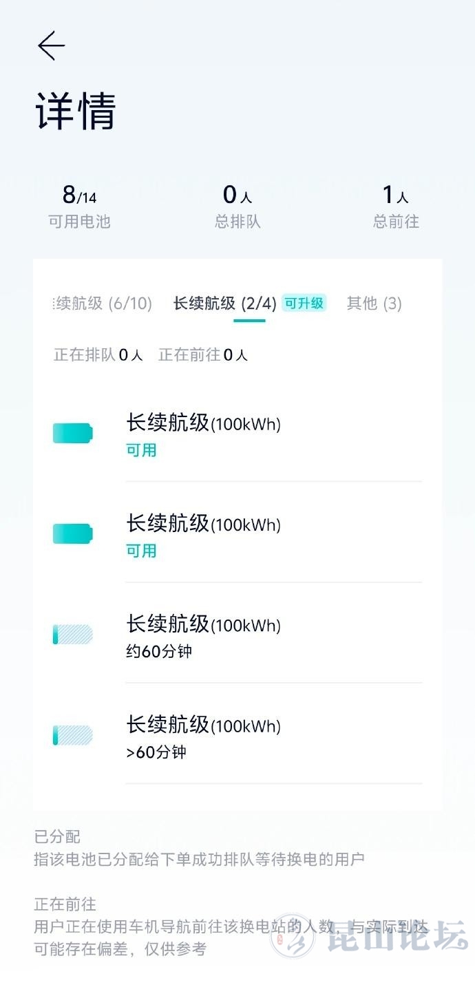 作为旁观者,研究下换电站以昆山兰博基尼酒店这个换电站为例在蔚来APP上统计出了这个站在过去一周里的换电次数,图1,当然,按照斌子的说法,这个站是已经盈利的,因为平均下来每天超过70次换电再看下这个站部署的电池分别是10块75、4块100、3块其他,这个其他,我理解为乐道和NT3.0的,一共17块电池,(其他的站,基本上配备的电池都是按换电次数来布置的,有空可以去统计下各自家附近站的营业情况)3代站能部署23块电池,这个站意味着还有6块电池的空间要注意到,NT2.0车型的55/66还能卖到明年中,那么显然,这个站的70/100度电池的数量将逐渐达峰了(当然其他站也是如此),我认为最多再增加1块,达到15块,就不会再增加了那么,留给3.0的车子和乐道的电池容量,还有8块的空间咋一看,太少了,里面还有3种规格呢?嗨,你先得看看,3.0加上乐道,还得多少年,才能有80万的存量,总要2年吧老电池数量在达峰之后,将逐年下降,比如二手车卖到内地去,大数据会根据换电次数的下降,将2代电池转移到内地换电站,逐步完成向3.0车型的电池更新从大方向来说,电池就是从东往西转移,西部的站还空着呢所以,乐道和3.0车型有3规格,并不会对换电站运营带来影响(转自Jsport_三汽)