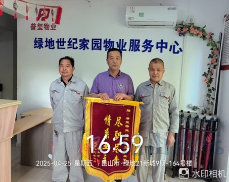 2025年4月,绿地世纪家园西区业主秋女士家里出现漏水问题,客服管家王翠芳积极对接工程金玉海、杨立处理家里漏水问题,业主赠送锦旗。 2025年4月,绿地世纪家园西区5期业主丢失贵重物品,项目经理姚少鹏积极配合寻找并送还业主,业主表示衷心感谢。 2025年5月,绿地世纪家园西区项目经理积极帮助业主尤先生寻找丢失儿童,得到业主衷心感谢。 2025年5月,绿地世纪家园西区140栋业主家里老人走失,项目经理姚少鹏积极动员帮助业主找回走失老人,得到业主衷心感谢。 2025年6月,绿地世纪家园西区业主家外墙渗漏水,项目经理姚少鹏积极对接帮助处理业主家问题,得到业主好评。点滴微光,汇聚星河