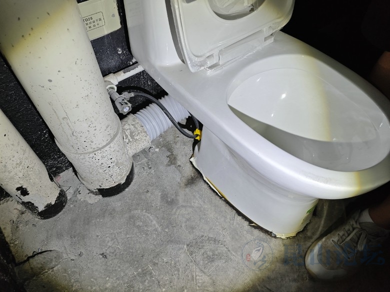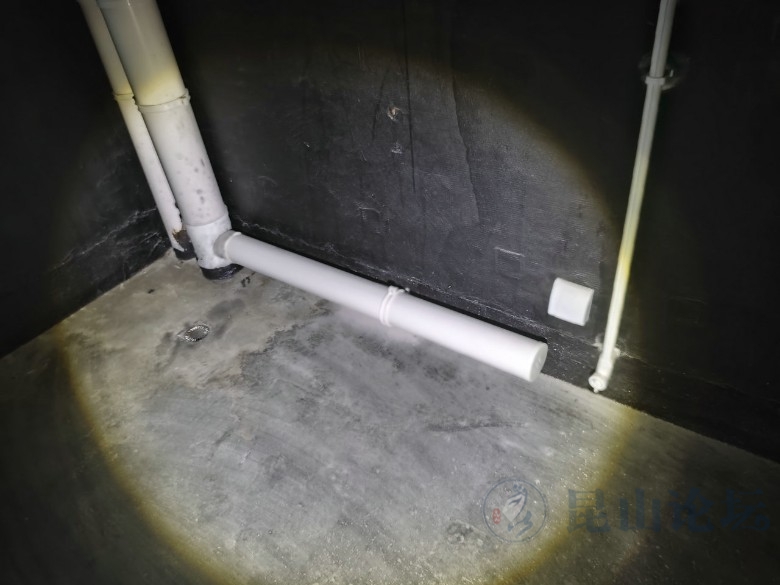 那只是墙上的印子,不是下层的,卫生间地面比外面走道只低一两公分。