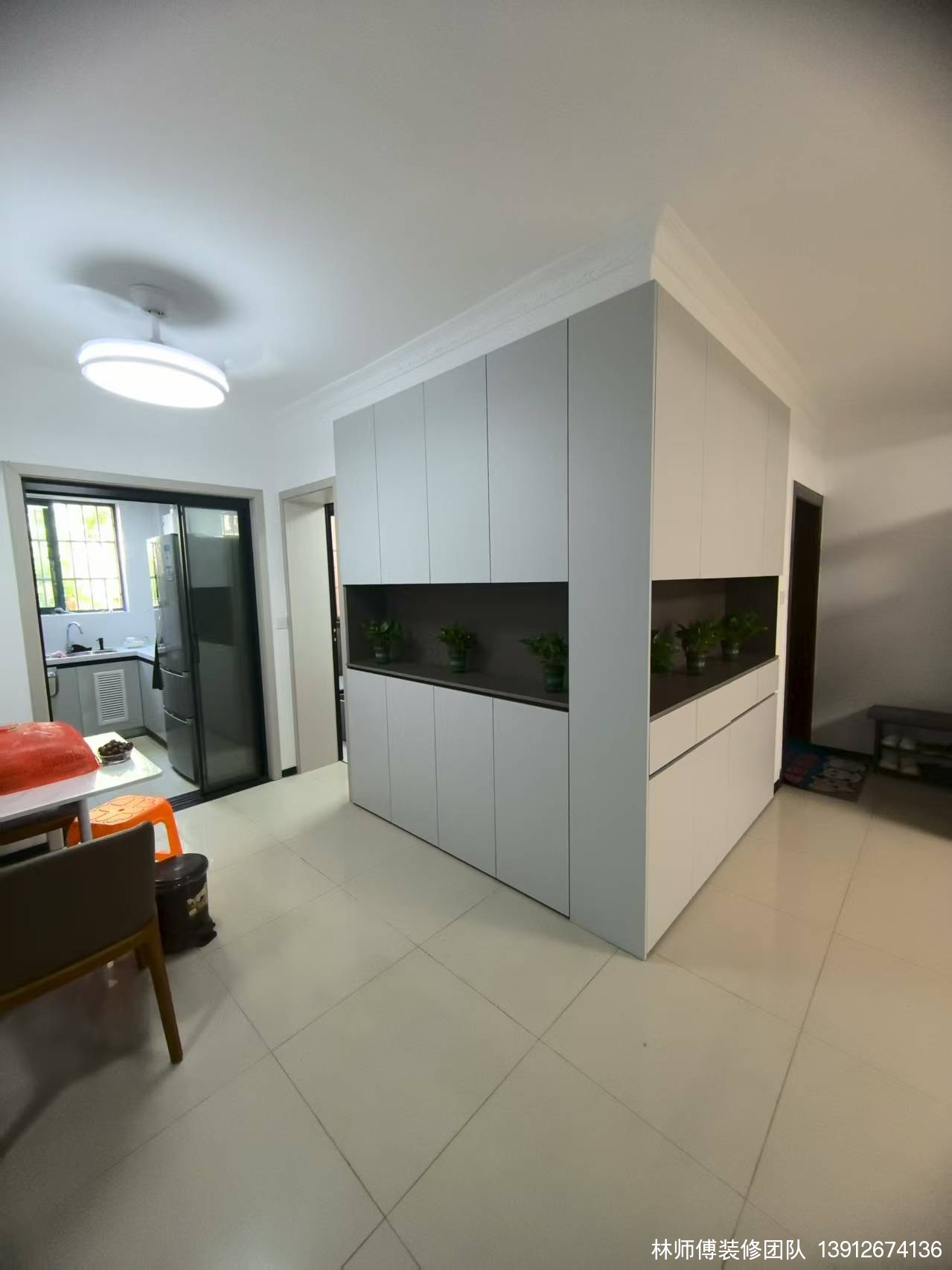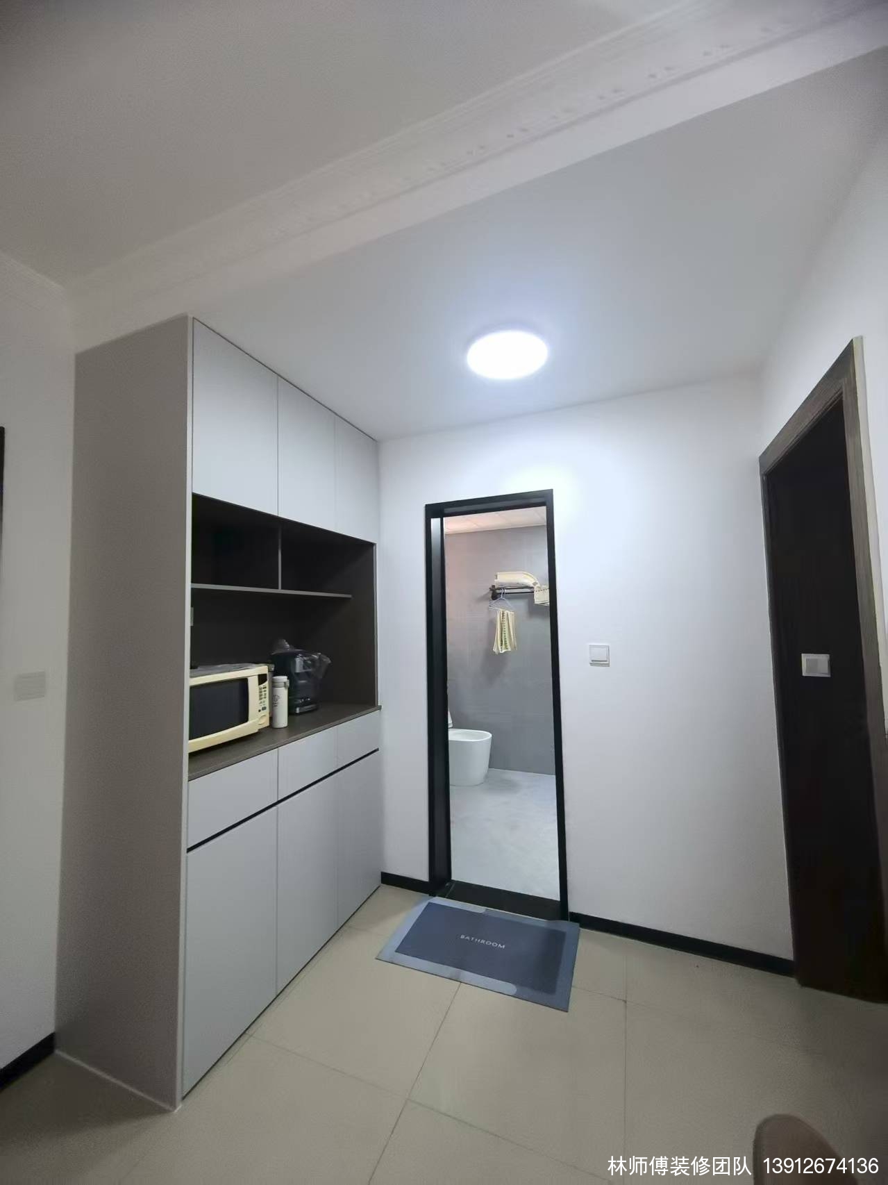 除了上述区域的改造,还在其他位置做了一些橱柜,进一步增加家里的收纳能力。例如在卫生间门口设计了收纳柜,可以存放卫生纸、毛巾等日常用品,方便取用。玄关处的柜子不仅有收纳鞋子的功能,还设置了抽屉和开放格,用于存放钥匙、包包等小物件。餐边柜的设计则为餐厅提供了收纳酒水、餐具等物品的空间,同时也可以作为展示区域,摆放一些精美的酒杯或装饰品,提升餐厅的整体氛围。