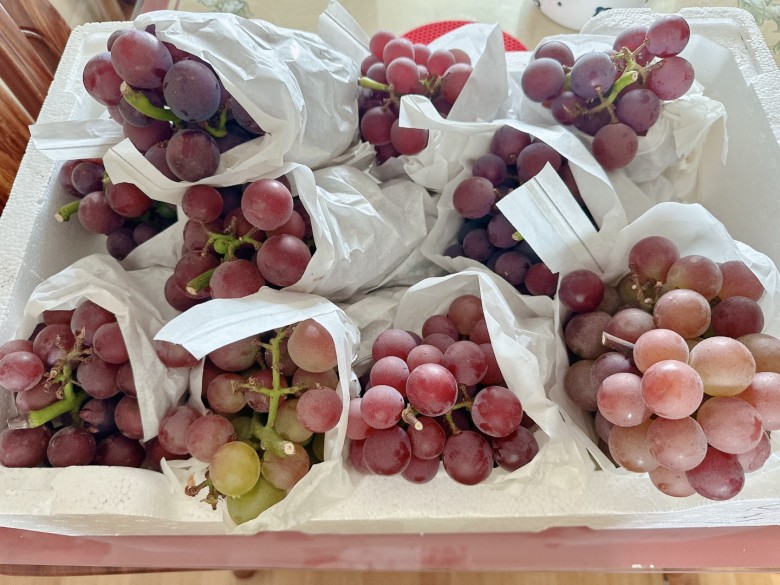 上午聊天时说起今年晴王葡萄便宜的,我说我还是喜欢吃巨峰,结果我爸又去买了一箱巨峰来。