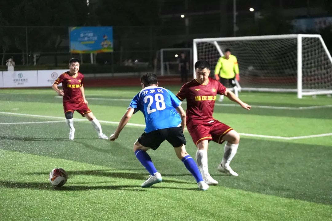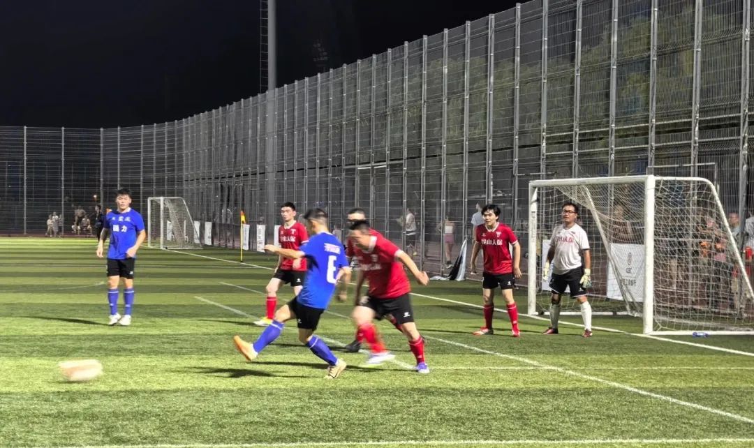 随着主裁判一声哨响,双方迅速进入状态,展开激烈角逐。上半场补时阶段,张浦德园队获得点球并罚进,取得一球领先。下半场,千灯联仕股份队加强攻势,持续在对方禁区形成威胁。常规时间最后一分钟,千灯联仕股份队25号球员在禁区内接队友传球并顺势摆脱两名防守队员后起脚破门,将比分扳平。最终,双方以1:1的比分战成平手。