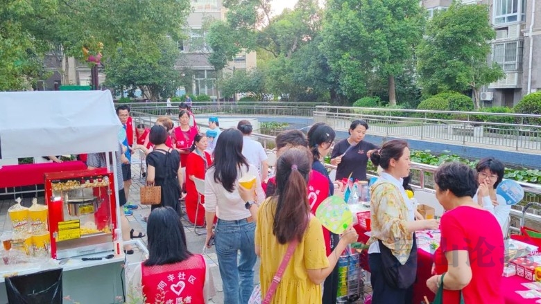 为响应“共建共享”的社区治理理念,推动小区业主间互动与资源循环利用,提升小区业主幸福感,2025年8月15日,党员志愿者、爱心商家以及部分小区业主在青江秀韵小区共同开展“百摊汇温情·乐享邻里集”共享市集活动。 本次活动包含“红色服务”、“邻里义卖”、“节庆互动”三个板块。 活动现场设置了义剪摊位、健康义诊摊位,为居民提供免费理发、血压测量、中医养生义诊咨询、中医理疗等服务。 活动现场设置了各类美食、闲置物品等摊位吸引了众多业主前来选购。 银行志愿者在现场开展反诈宣传,以生动形象的案例提醒业主提防电信诈骗、金融诈骗,守住自己的“钱袋子”。 家庭网络咨询服务摊位前也有志愿者在现场为有需要的业主提供咨询服务。 在夏日手作互动区,平价又美味的食物引得路过的业主纷纷驻足选购。无论是大人还是小朋友,品尝着美味的小吃,脸上都露出了满足的笑容。 活动一直持续到傍晚,现场一片欢声笑语,满满的“烟火气”。此次活动不仅增进了邻里感情,促进了业主间的互动交流,还极大提升了业主们的幸福感、满足感。 今后,江苏烨德物业党支部将继续联合同丰社区党总支以及爱心商家构建互助共融的桥梁,为业主提供更优质、便捷的服务,为青江秀韵小区注入更多活力与温度。