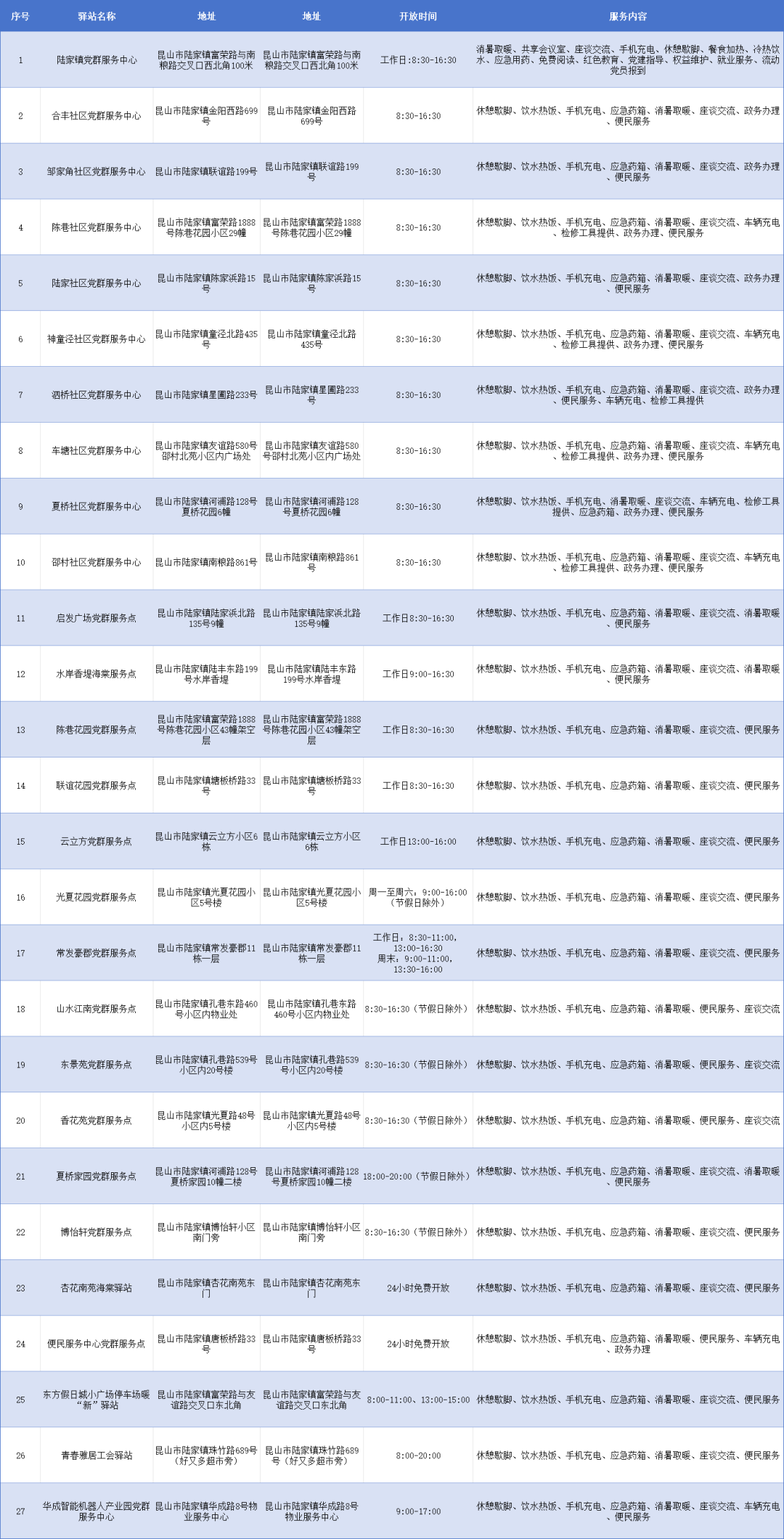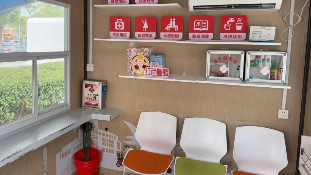 服务内容:休憩歇脚、饮水热饭、手机充电、应急药箱、消暑取暖、座谈交流、政务办理、便民服务