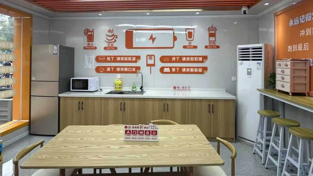 服务内容:休憩歇脚、饮水热饭、手机充电、应急药箱、消暑取暖、座谈交流、便民服务