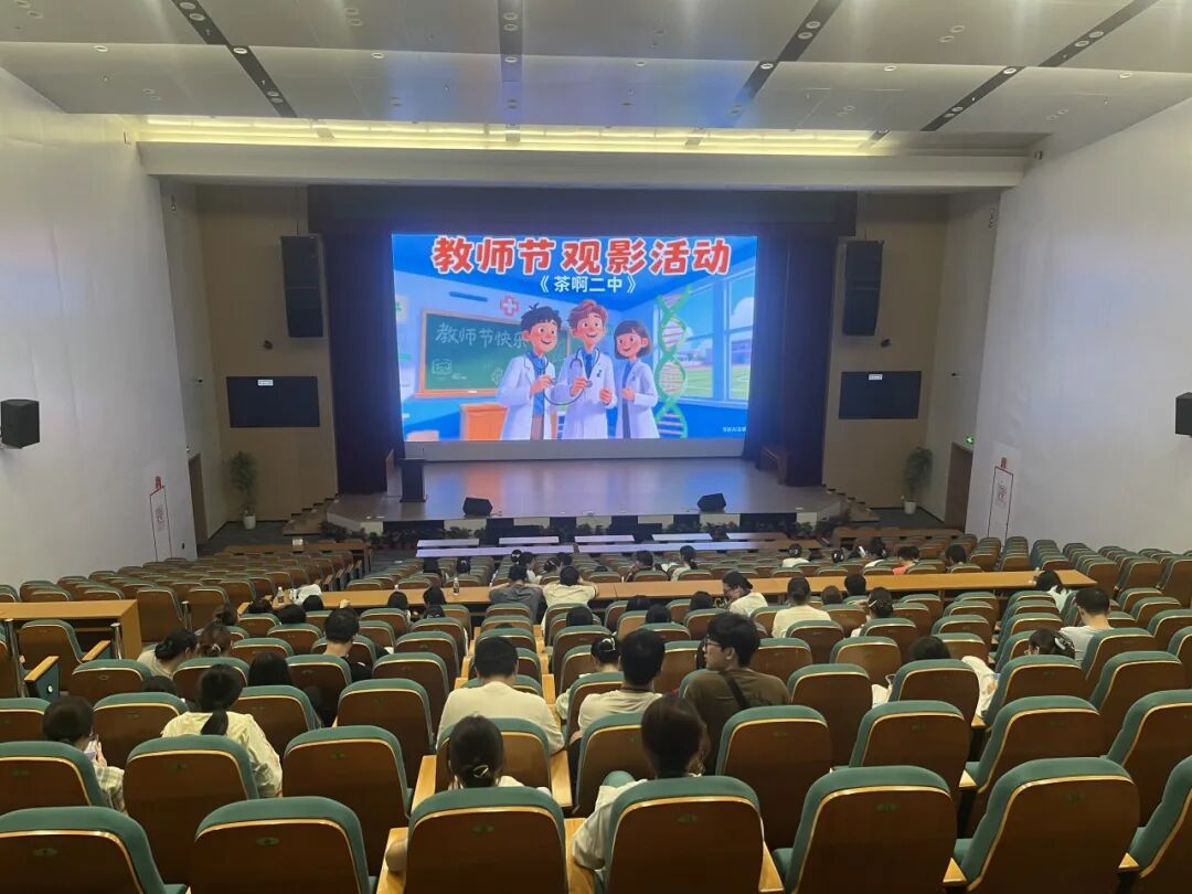 8月27日中午,师生们在学术报告厅共同观看电影《茶啊二中》。影片中纯粹的师生情谊引起大家的共鸣,恰如医院里临床教师与学员间的日常——教诲与探索、引领与成长、守护与共进。