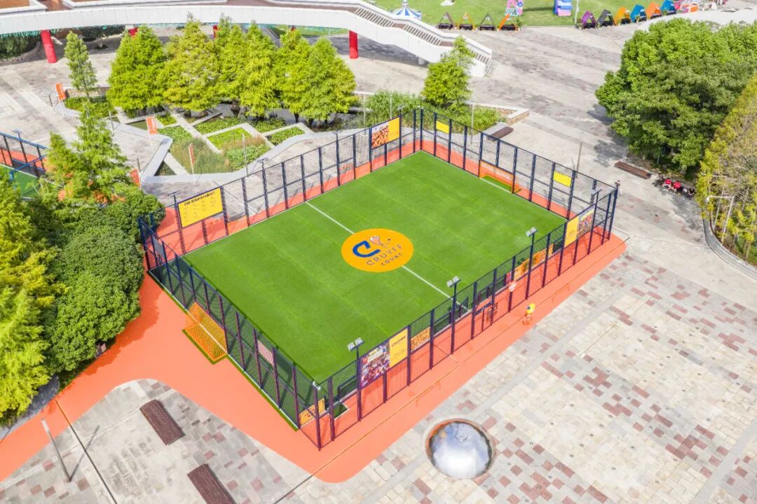 该球场采用“笼式足球”设计,球门全部由触控屏替代,参与者需根据屏幕指令完成射门、击打移动方块等任务,系统会实时测算球速、准度并评分。这一设计尤其适合12-15岁的青少年,在激发其足球兴趣的同时,也锻炼其反应力、协调力和团队意识。