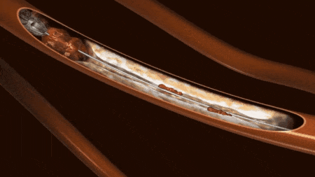 面对这一复杂病情,血管外科团队没有选择“重复老路”,而是选择了针对复杂血管病变的新型治疗方案——血管斑块旋切系统。它就像一台迷你“血管盾构机”,不只是简单“撑开”血管,而是从根本上清除堵塞物,破解狭窄难题。