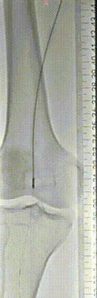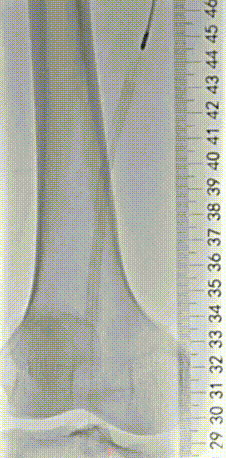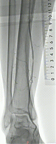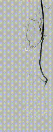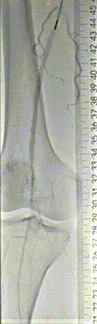 ▲治疗完毕,最终造影结果,股浅动脉局部非限流性夹层,支架内、膝下流出道血流速满意。