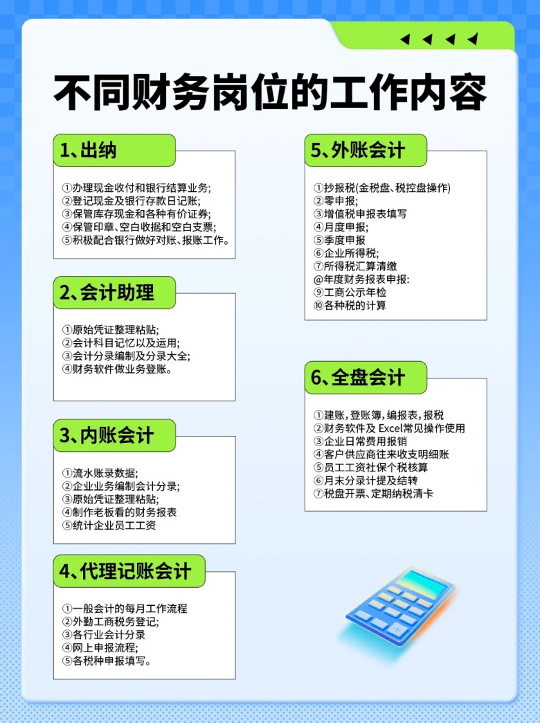 通过上述经验分享,希望能帮助您更好地准备和通过会计证考试。 会计实操岗位: