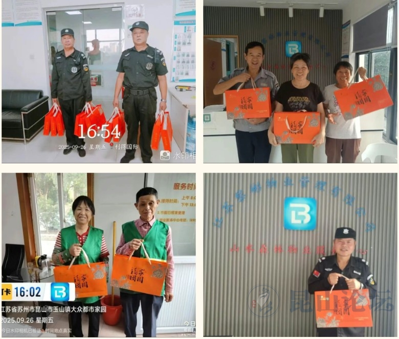 感谢你们把“守护”刻进日常:晨光里,你清扫步道、擦拭设施,让园区常保清爽;烈日下,你巡检水电、排查隐患,让家园安稳无忧;深夜中,你接听热线、应急响应,用责任撑起平安。节日前夕,公司已为每一位伙伴备好中秋礼品礼盒——软糯月饼裹着团圆味,实用好物藏着暖心关怀,这份甜与暖,是对你所有付出的致谢。 假期或许有轮值,但关怀从不缺席。愿轮值的你在岗安心,能在守护中收获认可;愿休憩的你能卸下疲惫,与家人围坐赏圆月、话家常。黎彬物业始终与你并肩,提前祝大家中秋快乐,国庆安康,万事顺意! [ 此帖被昆山市物协在2025-10-01 20:43重新编辑 ]