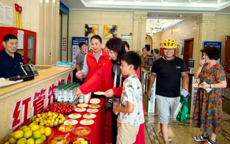 活动前夕,上房服务的工作人员便开始了紧锣密鼓的准备工作。会场内,精心设计的活动海报与祝福语,传递着双节的喜悦与祝福。最为引人注目的,是工作人员精心准备的各式月饼:既有皮脆馅丰、香气扑鼻的现烤鲜肉月饼,也有口感细腻、口味醇厚的经典广式月饼,它们被细致地摆放在精美的餐盘之中,宛如一件件艺术品,静候着业户们的到来,从视觉到嗅觉,率先点燃了现场的节日气氛。