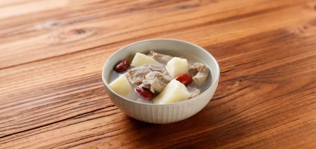 做法:排骨焯水,与切块的山药、红枣、枸杞一同炖煮,汤成调味。平和温润,老少咸宜。