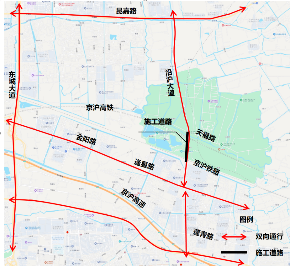 过境车辆可通过昆嘉路、东城大道、金阳路、逢星路、G312等绕行。