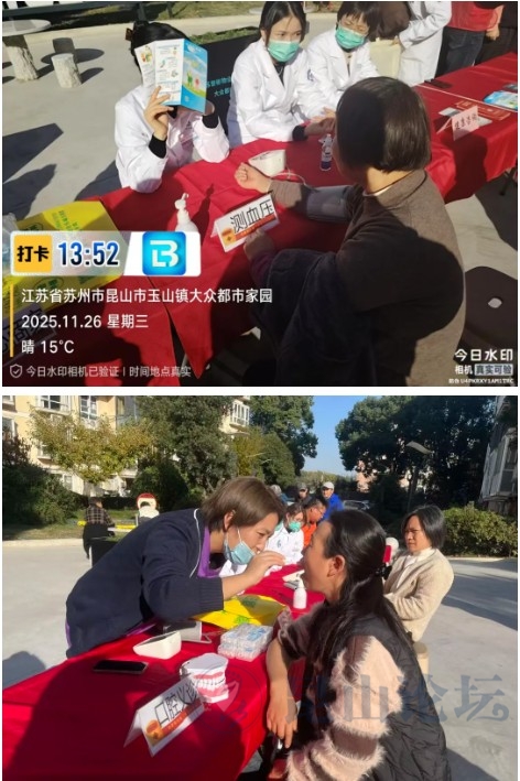 健康守护: 义诊桌前的血压仪、口腔问诊工具没停过,医护人员耐心叮嘱着注意事项,把健康提醒送到了手边;
