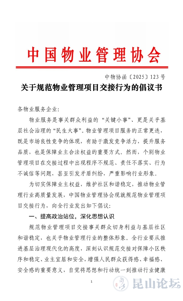 关于规范物业管理项目交接行为的倡议书